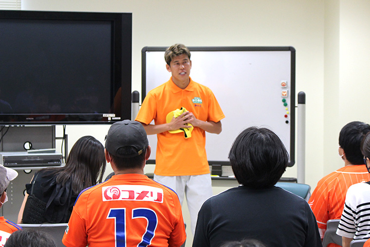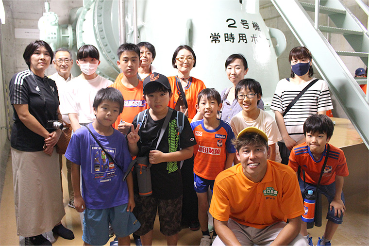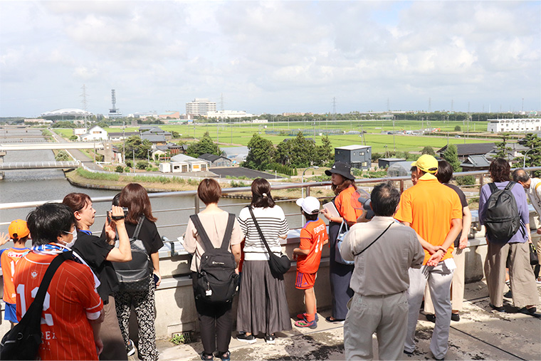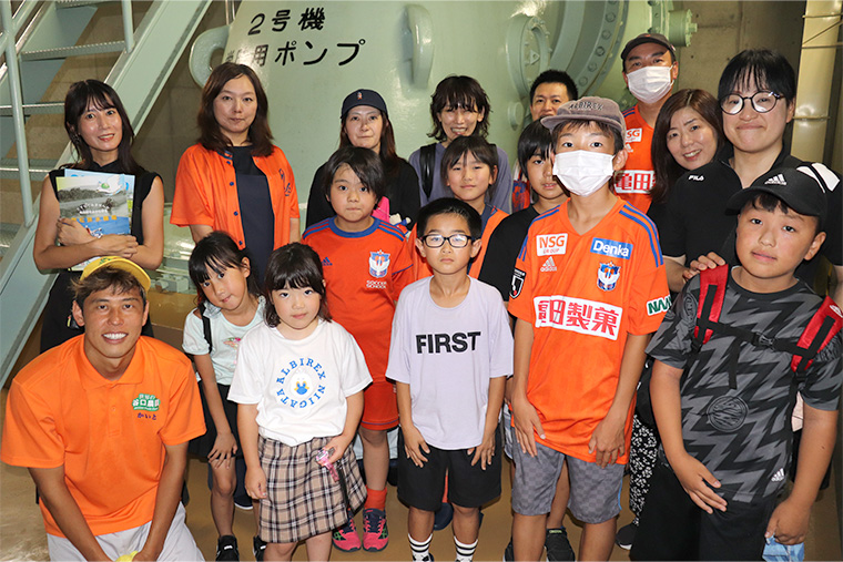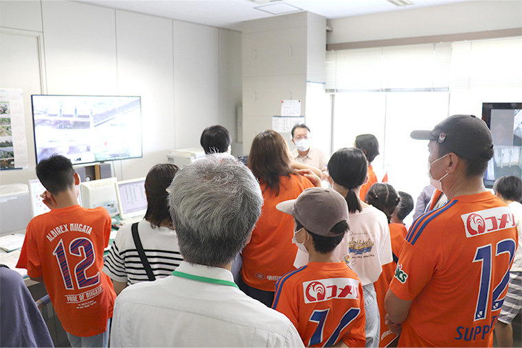 参加者が続々と集まってきた。中にはアルビレックスのユニフォームを着た子どもや保護者もいる。谷口海斗選手の到着を待つ間、亀田郷の歩みを、新潟県新潟地域振興局農林振興部の近藤専門員が説明してくれた。