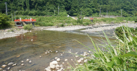 万石頭首工は、海川流域約70haを潤す万石用水路の取水口です。